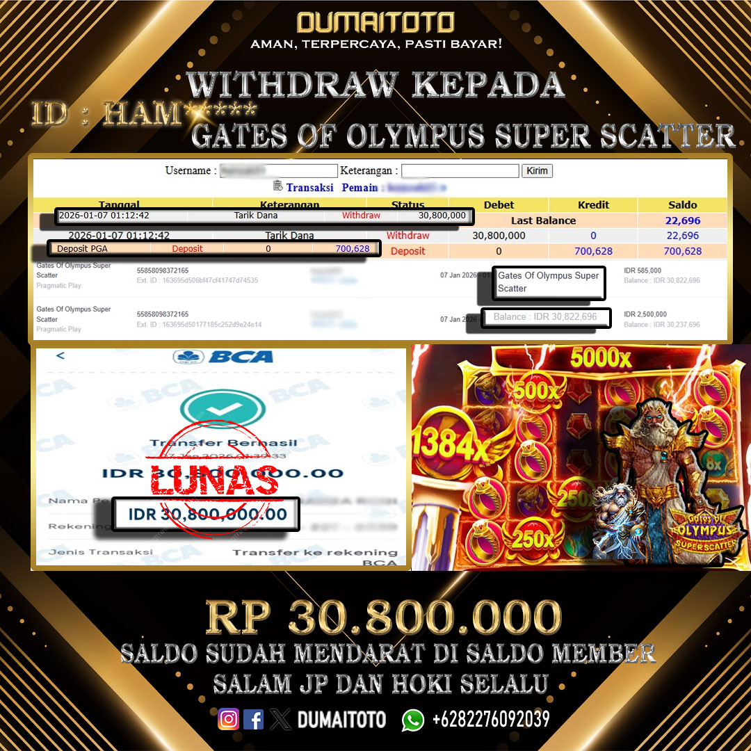 Withdraw Telah di Proses dan Saldo Sudah Mendarat Mulus di Rekening Anda !!! WD Berapapun di DUMAITOTO di Bayar LUNAS !!!